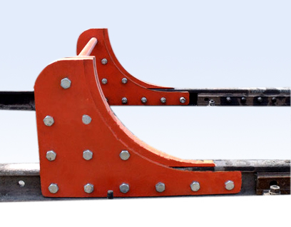 月牙擋車器結(jié)構(gòu)簡單、維護(hù)方便,占用線路短,成本低,適用于溜逸車輛速度很低的場合。主要用于車輛段庫內(nèi)線路終端。
